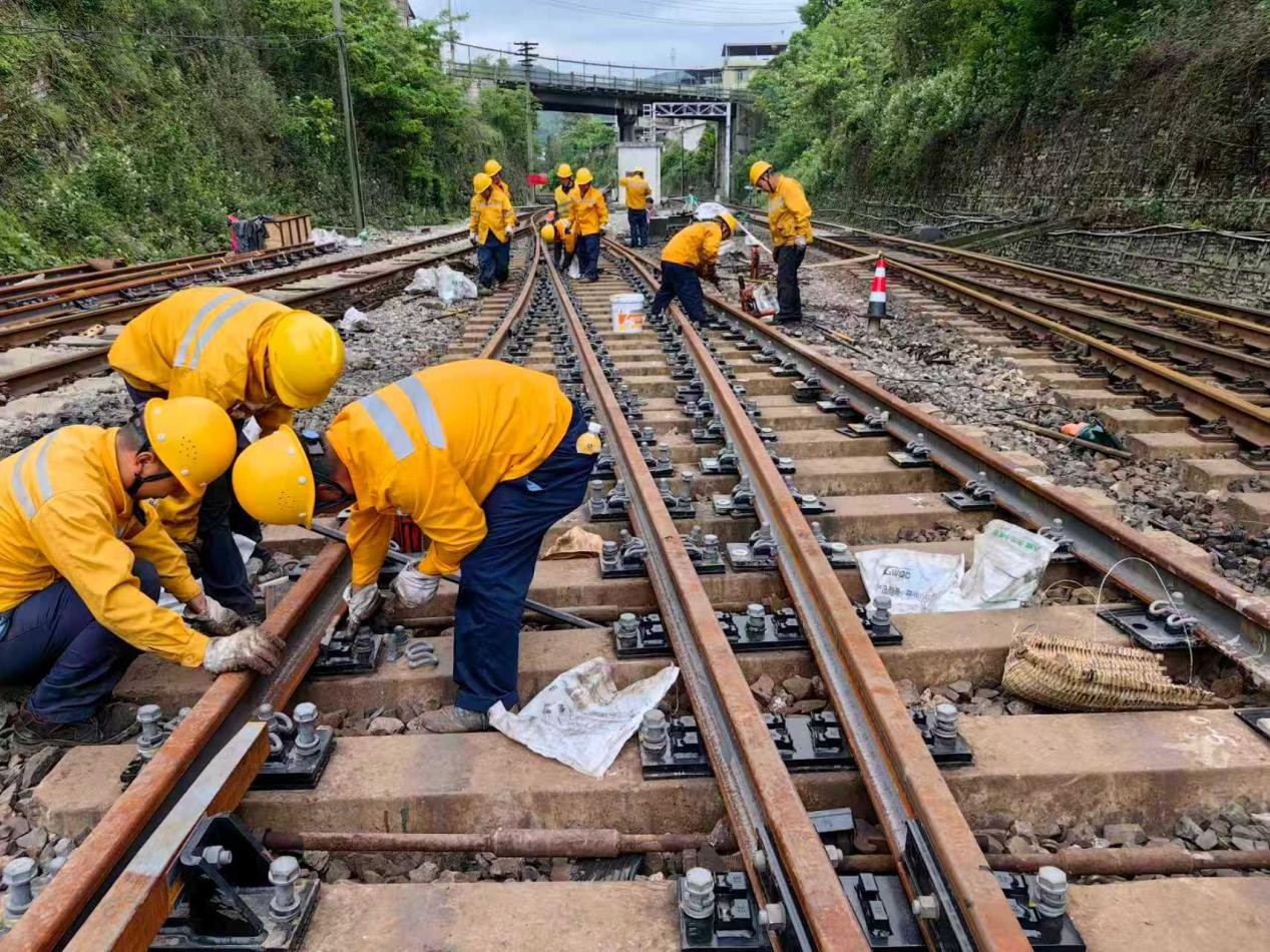 基于前期良好的合作基础,永耒公司于今年再次中标瓮福化工公司铁路木枕道岔安全隐患整改项目。项目启动后,公司率先完成了4组单开道岔的整改工作。后续施工中,面对位于业主咽喉要道的5号、7号道岔——该区段连接走行线,对生产运营影响重大,永耒公司组织精干力量,科学部署,采取“人歇机不歇”的两班倒作业模式,在确保施工安全与质量的前提下,突击攻坚,最终比原计划提前2天完成施工任务,最大限度减少了对业主生产的影响。