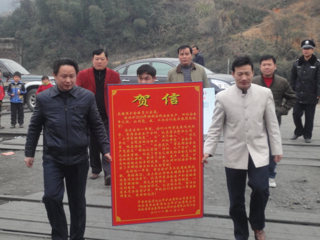 元月1日上午9.38时,白山坪公司龙塘煤矿,红旗飘扬,鞭炮齐鸣,热闹非凡。公司副经理龙秋根、罗秋德及有关领导将一张60万元的实现安全年的支票和贺信送到了龙塘煤矿。至此,该矿已四创安全年,全矿干群再次享受到“丰收”的喜悦。