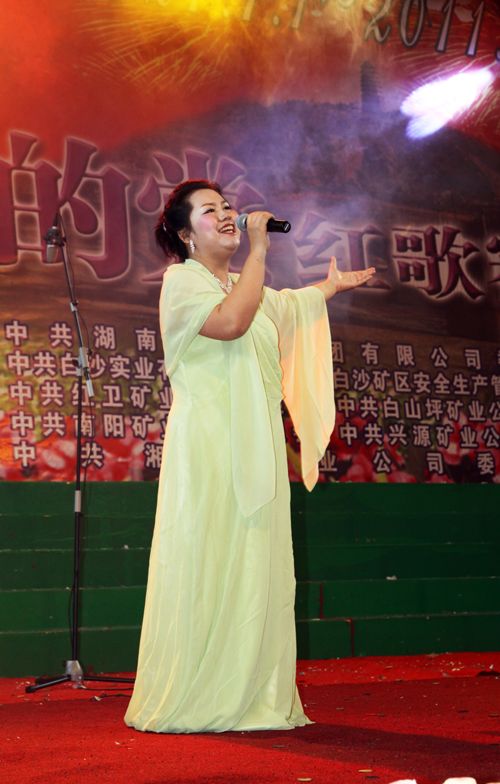 白山坪公司匡妮表演的独唱歌曲《绿叶对根的情意》