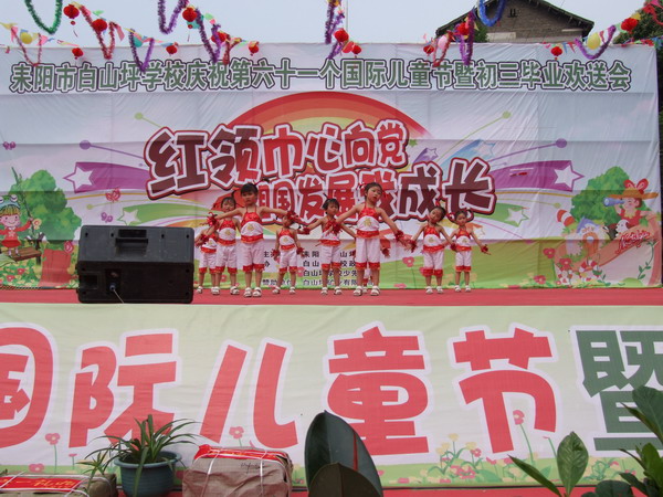 6月1日,耒阳市白山坪学校联合龙塘、磨田两所分校举办了一场以“红领巾心向党,祖国发展我成长”为主题的庆祝“六一”儿童节暨初三毕业班欢送会文艺汇演,用丰富多彩的活动形式,让广大师生共同度过了一个有意义的、快乐的节日。