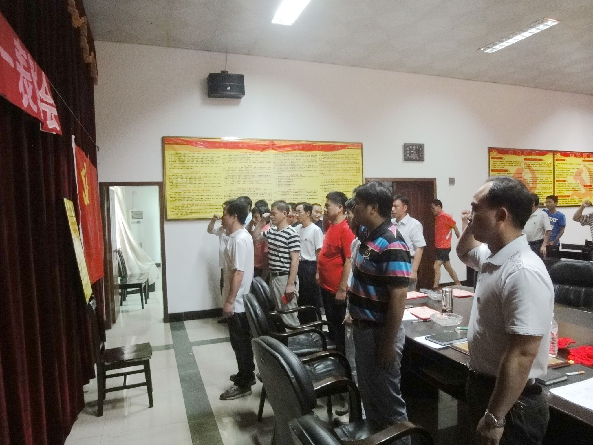 新党员面对党旗举行了庄严的入党宣誓和老党员重温誓词
