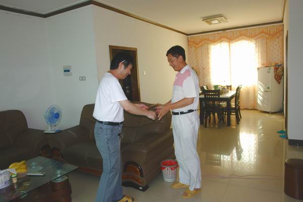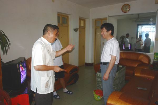 图四:党委书记陈利群慰问机关门卫党员杨运生