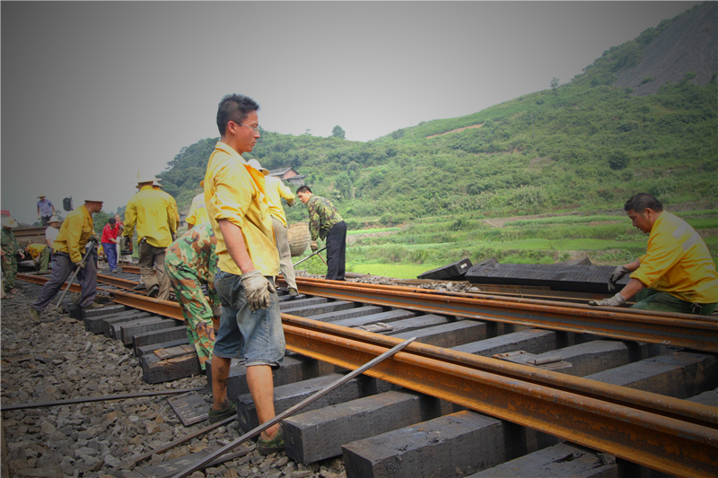 永耒工电段紧紧抓住集中大修施工的有利时机,积极主动做好配合工作,综合整治各类设备病害,不断提升设备质量,确保行车安全。图为施工队伍正在更换病害钢轨。