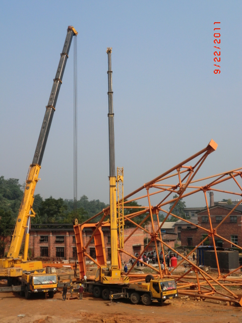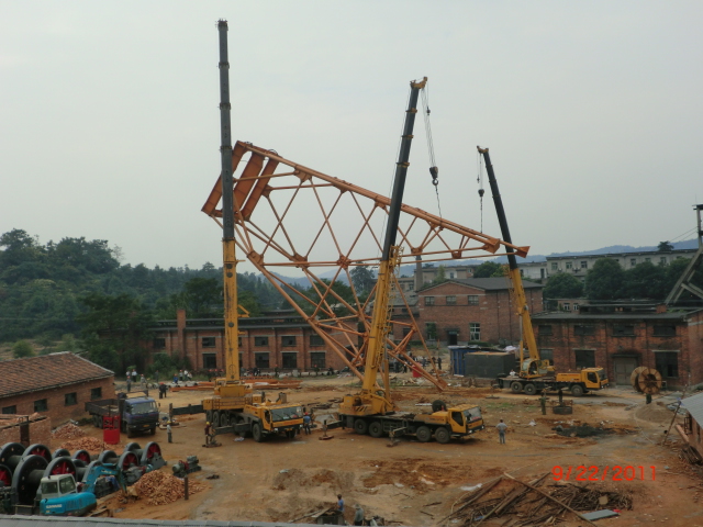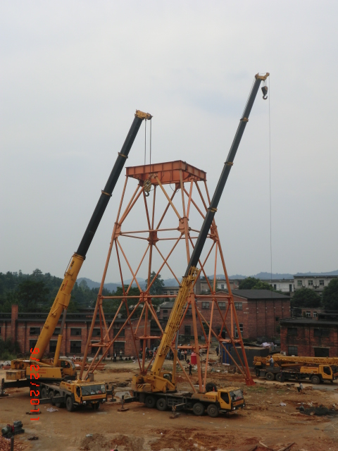 9月22日下午六时许,白山坪矿业公司磨田煤矿工业广场鞭炮齐鸣,已提前组装好的新立井施工井架顺利的被吊移到预定位置。据悉,此井架重达58吨,楚湘公司总工程师金鑫亲临现场指挥,动用了三台吨位分别为20吨、75吨、200吨的吊车同时进行起吊移动,使施工井架按照既定的计划“就位”。新立井施工井架的站立,标志着磨田煤矿的产业升级项目进入另一新的阶段。