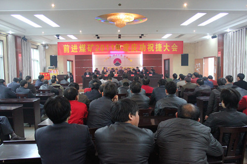 在前进矿的庆功告捷大会上,该公司执行董事、总经理石武军宣读了贺信,给该矿颁发了奖金支票。前进矿矿长伍智勇总结回顾了2011年该矿所取得的丰硕成果,阐述了新年的工作思路。祝福声声加勉励,战鼓催征展宏图。该公司执行董事、总经理石武军在会上作了热情洋溢的讲话,对该矿所取得安全生产、高产高效、和谐稳定的显著成绩表示热烈祝贺,感谢前进矿广大干群2011年为公司的发展所做出的积极有为的贡献。石总强调:送贺信仅仅只是一种形式,采掘员工是煤矿的衣食父母,要感恩,感恩于采掘员工,感恩于基层单位。石总还强调:安全生产只有起点,没有终点,希望前进矿接过2011年丰硕成果的接力棒后,在吉祥如意的新的一年里必须再接再厉,戒骄戒躁,乘胜前进,再创辉煌。就新年近期工作的部署,石总要求做到“六个要”:一是要认真贯彻落实省局在株洲召开的安全会议精神,严格执行“十条禁令”;二是要加大瓦斯治理力度,坚持放出班炮;三是要加强采掘工作面防治水的综合分析;四是要加大隐患排查力度及防寒防冻等“四防工作”的宣传,确保井下安全生产有序,地面安定祥和;五是做好安全奖的发放和年终奖、年终物资发放的准备工作;六是要加强绞车司机的培训。
