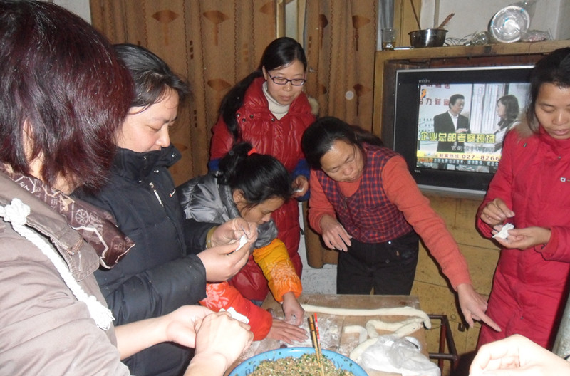 图为该段珠矶滩站女工正在开展包饺子比赛