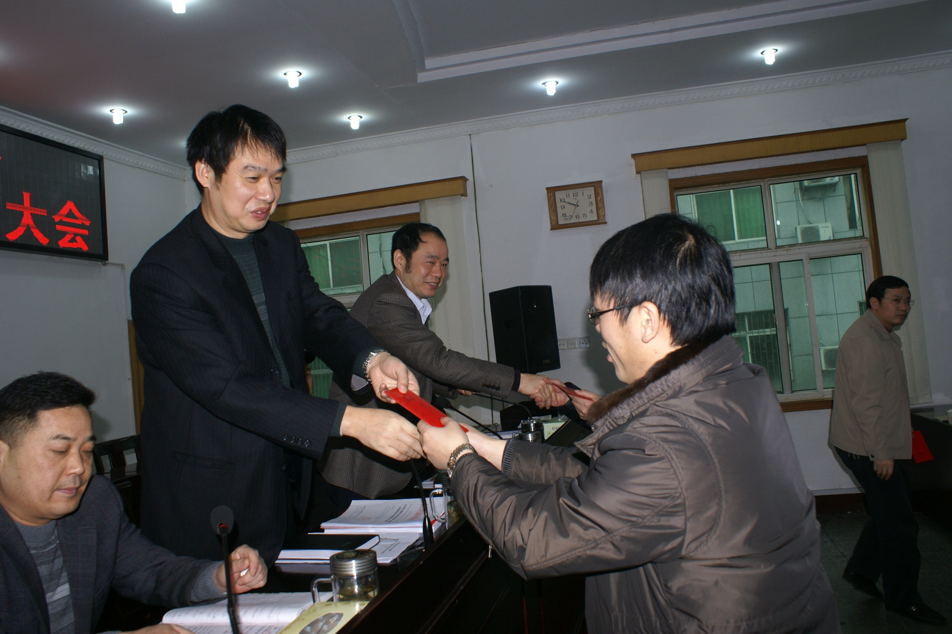 (公司主要领导为三矿颁发2月份安全超产奖)