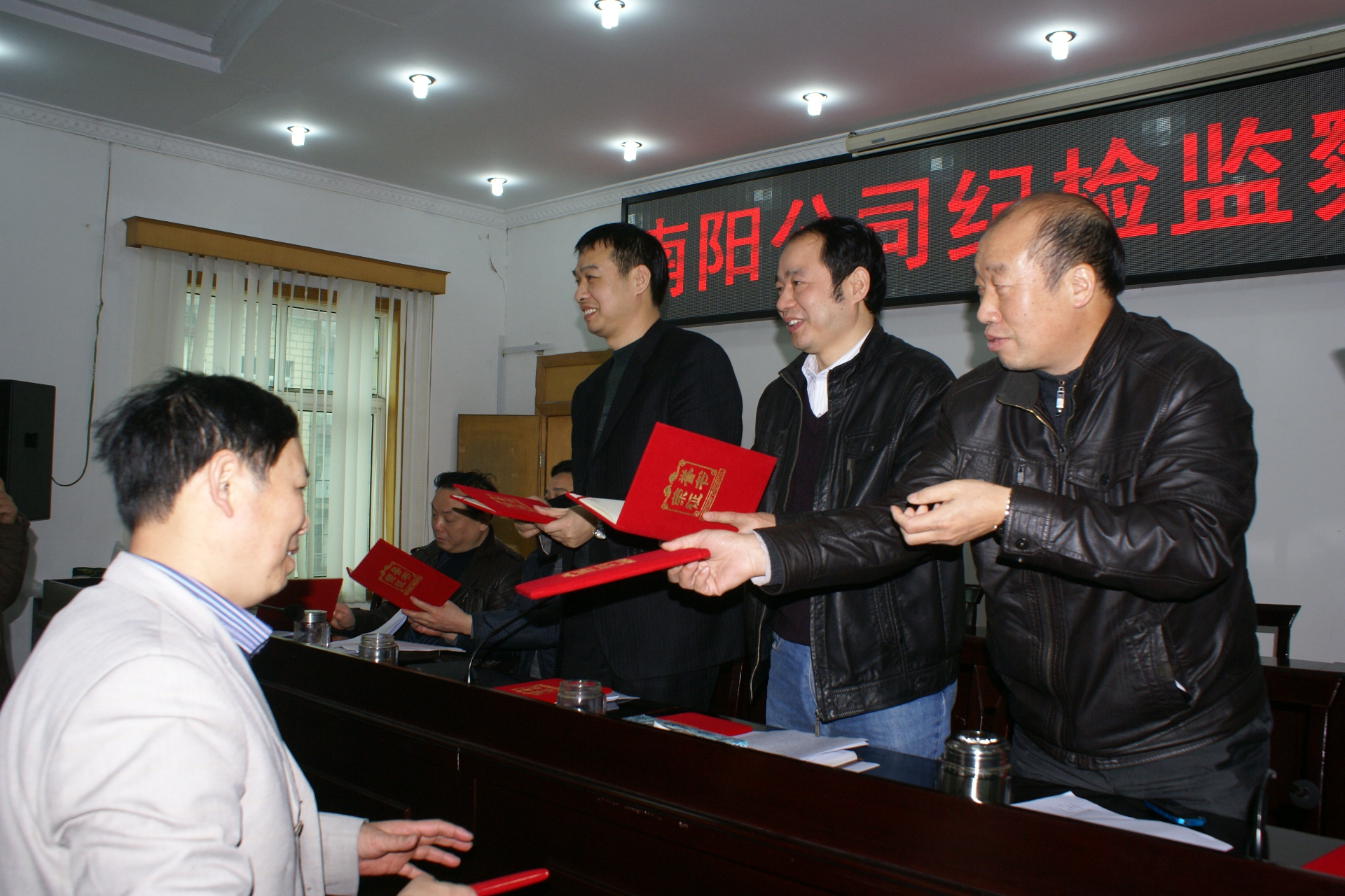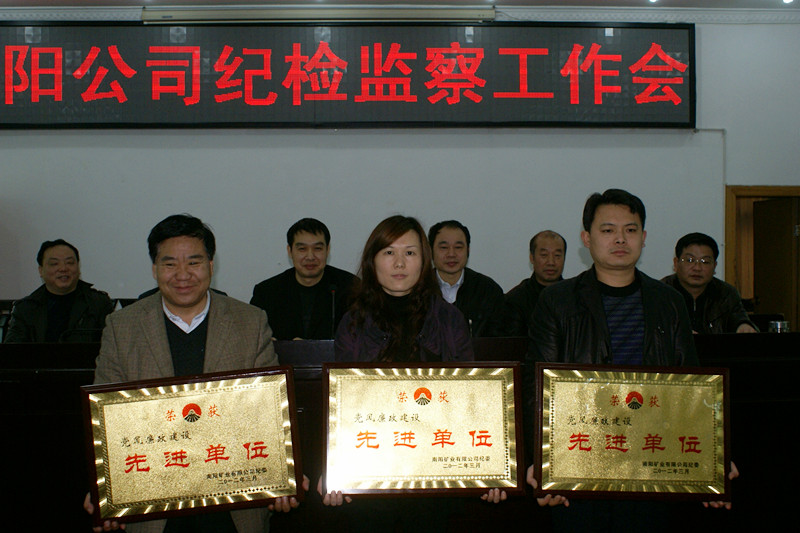 3月16日,南阳矿业公司召开了纪检监察工作会议,该公司领导、“三矿”、直属单位的党政主要领导、“三管人员”及公司全体机关工作人员参加了会议。会上表彰了南阳庙矿等3个2011年度党风廉政先进单位(部室)及许琦等7名先进个人。各单位党总支书记(支部书记)向公司党委书记谭景茂递交了党风廉政建设目标责任书,所有中级职员签订了廉洁自律承诺书。