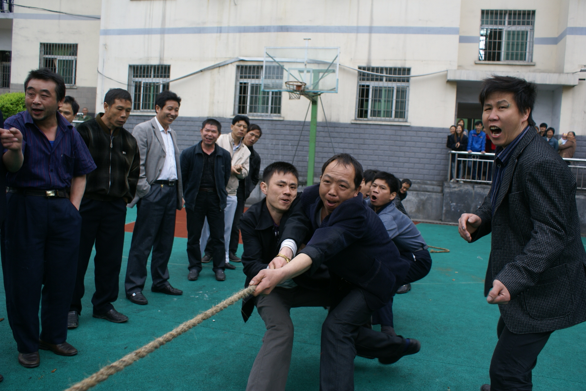 4月15日是第21个采掘工人节,南阳矿业公司开展了系列活动隆重庆祝矿工的节日。期间,在公司广播、电视及前进、淝江两矿的电子显示屏上开辟专题,为采掘工人点播平安金曲。公司召开了采掘工人表彰暨座谈会,在三矿召开了采掘工人节庆祝大会,三矿并举办了采掘工人拔河赛。图为三矿采掘工人拔河赛的场景。