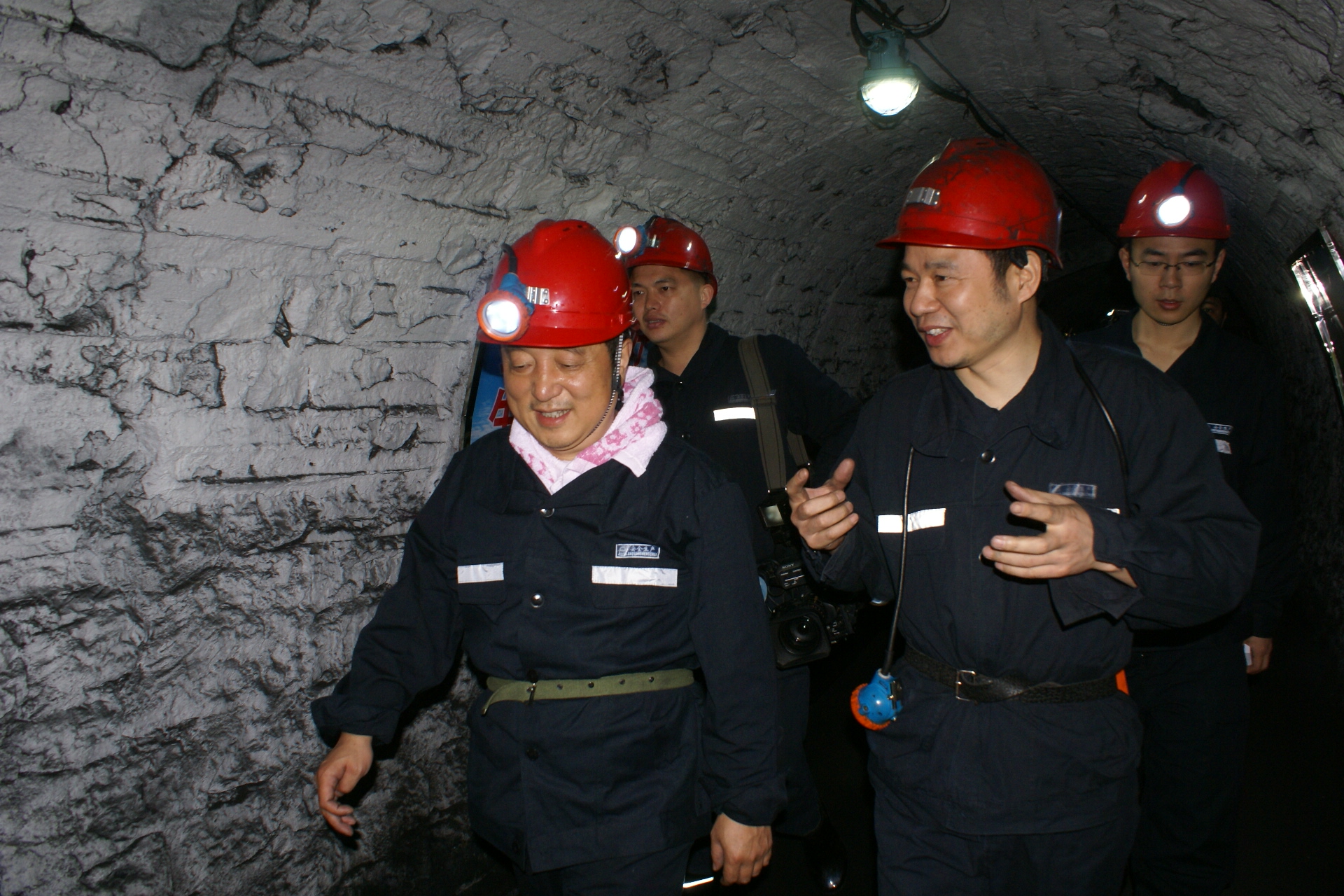 (南阳矿业公司党委书记谭景茂向新华社湖南分社记者谭畅介绍矿井情况)