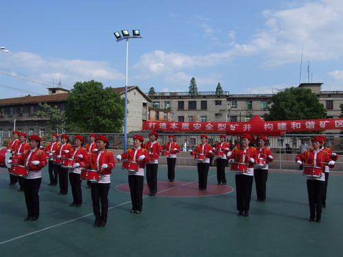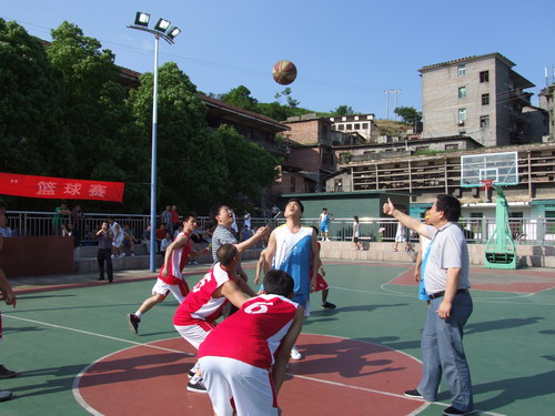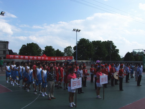 这次的篮球赛分龙塘矿、白山坪矿、公司新塑胶球场三个赛场进行,采取循环赛,由龙塘、白山坪、磨田三矿和机修厂、公司机关五个单位组队参赛。赛前,在公司机关新塑胶球场举行了简单而隆重的开幕仪式,家属军鼓队现场带来了精彩的表演后,龙塘矿队对磨田矿队,白山坪矿对公司机关队进行了两场比赛。公司董事长、总经理何文飞亲自为比赛开球。