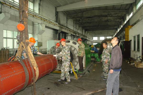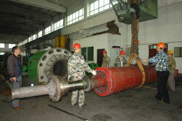 图十二:经过工人们的努力,发电机转子终于安全着陆