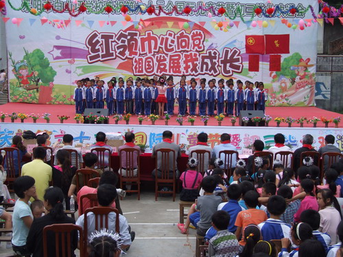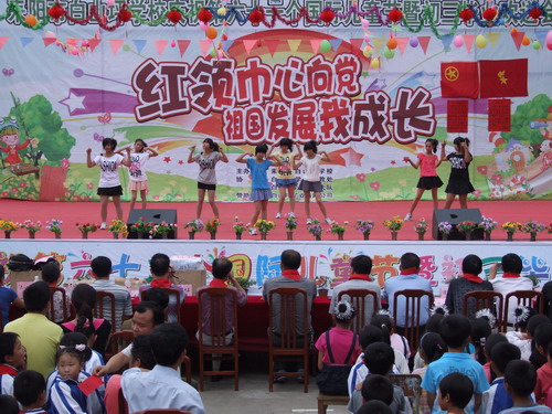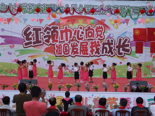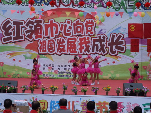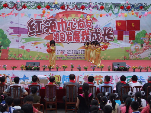 文艺演出在一曲全体演职人员大合唱《少先队队歌》的歌声中拉开了帷幕。1000余名演职人员、师生和群众参加和观看了演出,表演形式有大合唱、舞蹈、配乐诗朗诵、时装表演和手语表演等为主,共22个节目,所有节目均为自编自演,非常精彩,掌声不断。白山坪公司领导非常关心少年儿童的健康成长,拨款4700元资助特困学生和作为优秀学生的奖学金,拨款3000多元购买了学习用品、1000多远购买了玩具,在演出前全部捐赠给了学校,表达了一片爱心。