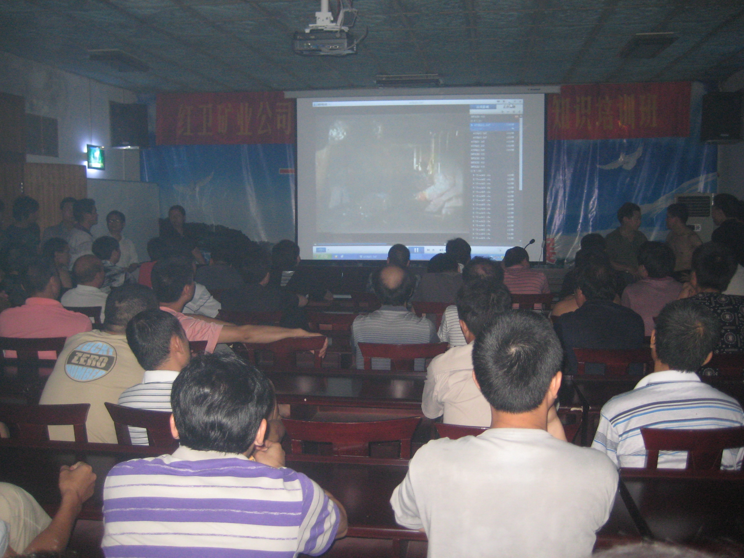 红卫公司龙家山矿组织员工观看安全教育片