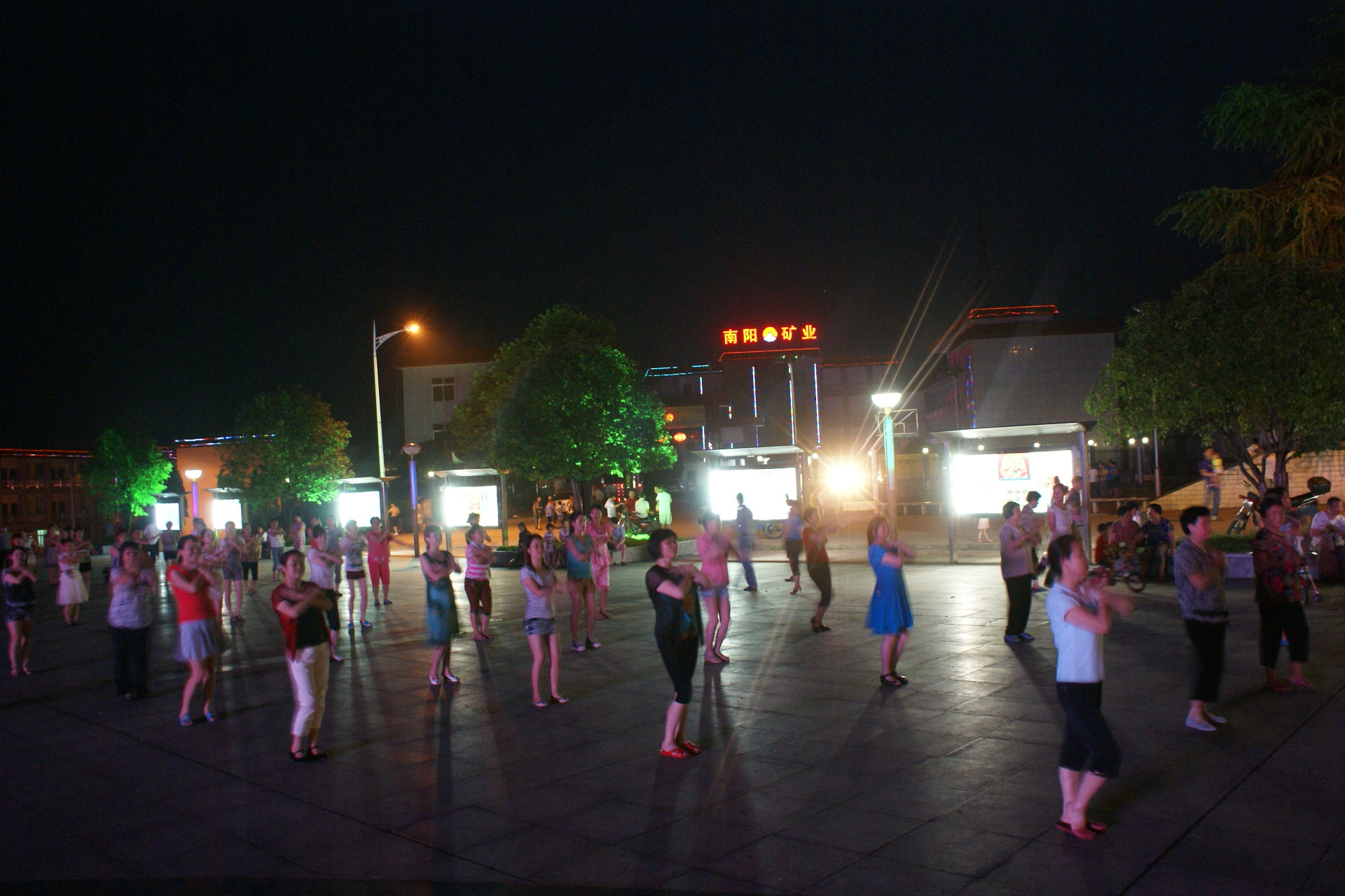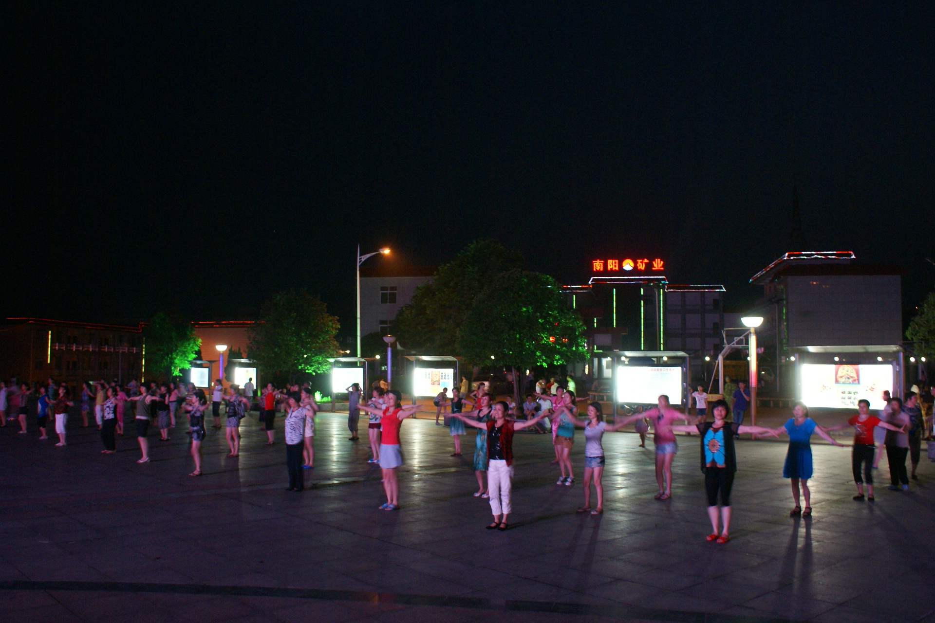 南阳矿业公司致力打造“幸福南阳”,在构筑安全、高产、高效、和谐的同时,不断提升员工幸福指数,公司本部和三矿的休闲广场成了大家茶余饭后的好去处。夜幕降临,华灯初上,只见广场内灯火辉煌,游人如织。小朋友在天真的追逐着童真;员工家属及离退休老工人在陶冶情操中健身。他们跟随广场上LED屏播放的欢快音乐翩翩起舞,或围着广场四周悠然漫步,形成了一种繁荣祥和的独特矿山广场文化。(图为员工家属在跳广场舞的场景)
