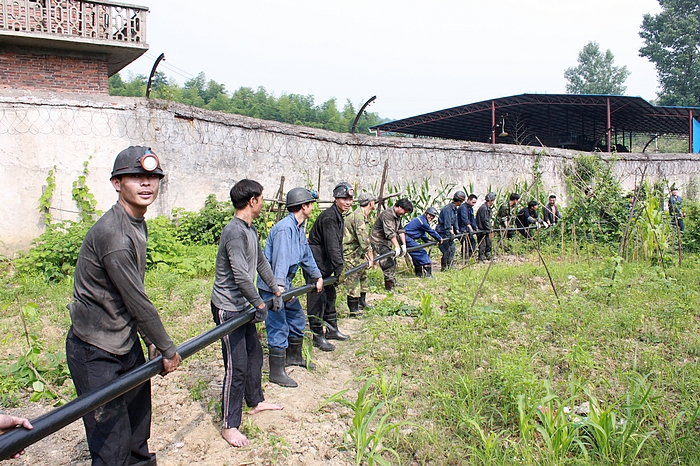 9点30分左右,最危险困难的井下敷设到位。此时,该矿矿领导为了不让职工松劲,同职工一块开始了地面的运送工作。当电缆盘快放完时,一名职工准备去电缆盘的正面帮忙,这一细节被矿长阳翀看到,转动的电缆盘带动的电缆如果甩出,那重量可是非常惊人的。说时词那时快,阳矿长大声叫住那名职工,同时告诫周围职工这样危险后,才继续进行拉运。