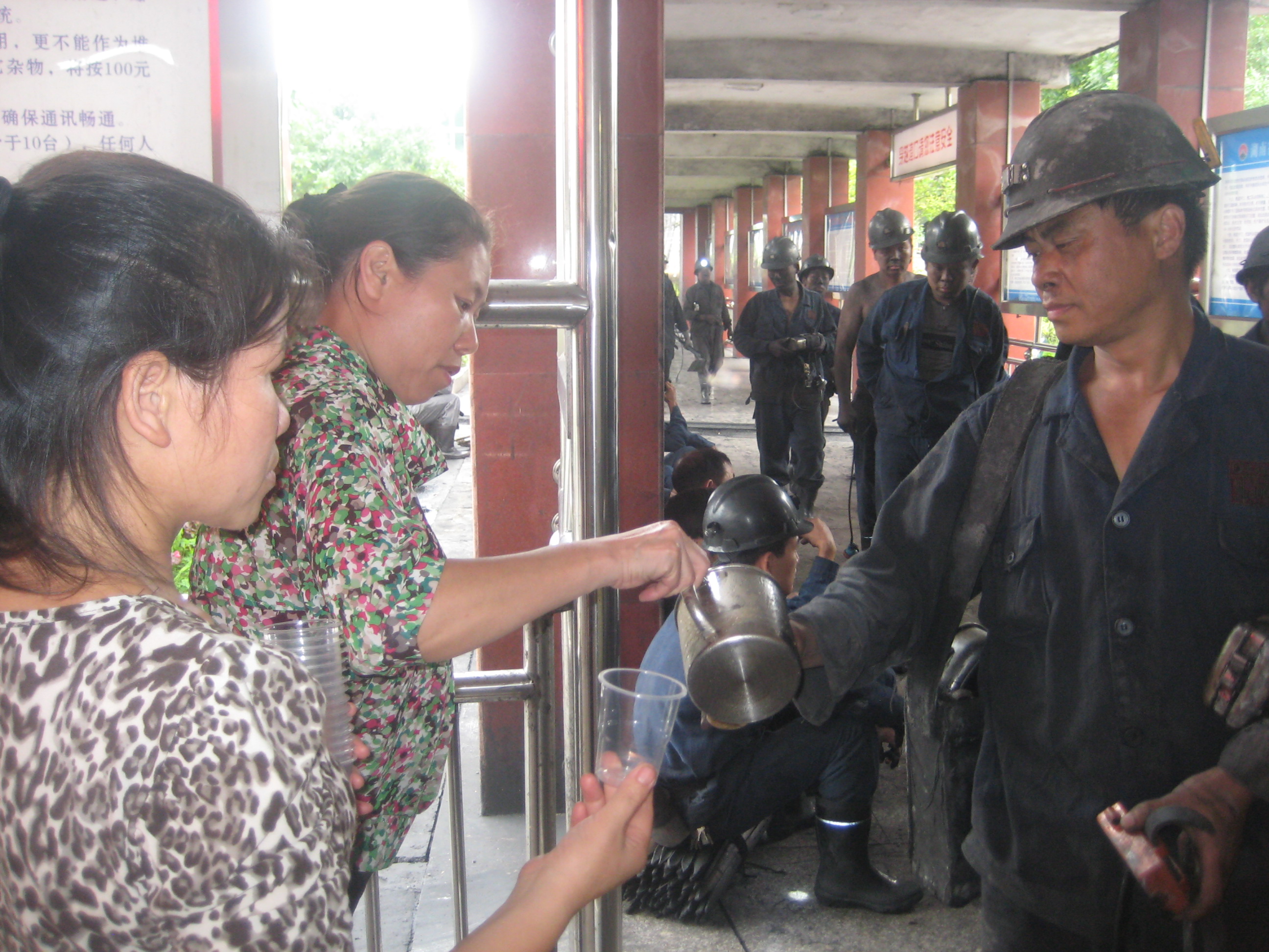(通讯员资道光报道:)近日,红卫公司龙家山矿女工委组织家属分三班在井口为职工送清凉活动,她们为职工端上一碗碗绿豆稀并送上一句句平安祝福语,祝福他们工作顺利、平平安安、家庭幸福!据悉,该矿女工委将在6月–9月连续不断的到井口开展送清凉等活动,用真诚筑牢安全生产第二道防线。