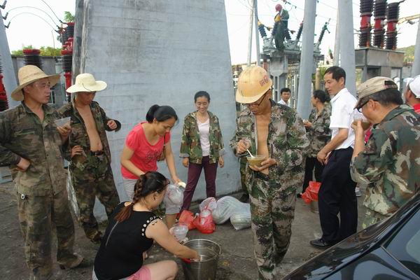 连续高温牵动着该公司领导的心,他们时刻牵挂着一线工作的员工,为将公司的关怀及时传递给一线员工,7月11日,由公司党委副书记、纪委书记、工会主席刘保平带领党委工作部以及工会相关人员,冒着高温酷暑慰问一线作业的员工。为战高温冒酷暑的供电所一线员工送去绿豆粥、西瓜、苹果、烟、槟榔等,并派发了十滴水、夏桑菊、风油精等防暑药品,感谢他们为公司的无私奉献。