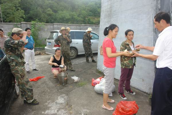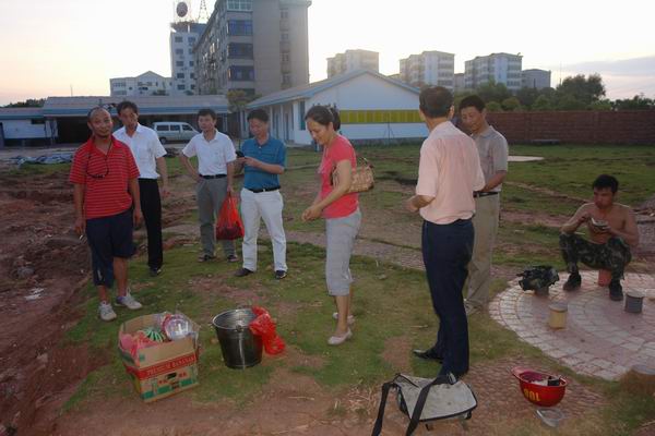 图十:日落黄昏,供电所员工才把新变压器更换好,歇息一会喝碗绿豆粥解暑