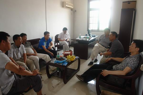 图六:新渡村支书刘鸿运(右二)、泥塘村支书谢廷贵(左三)以及相关领导参加完揭牌仪式后座谈