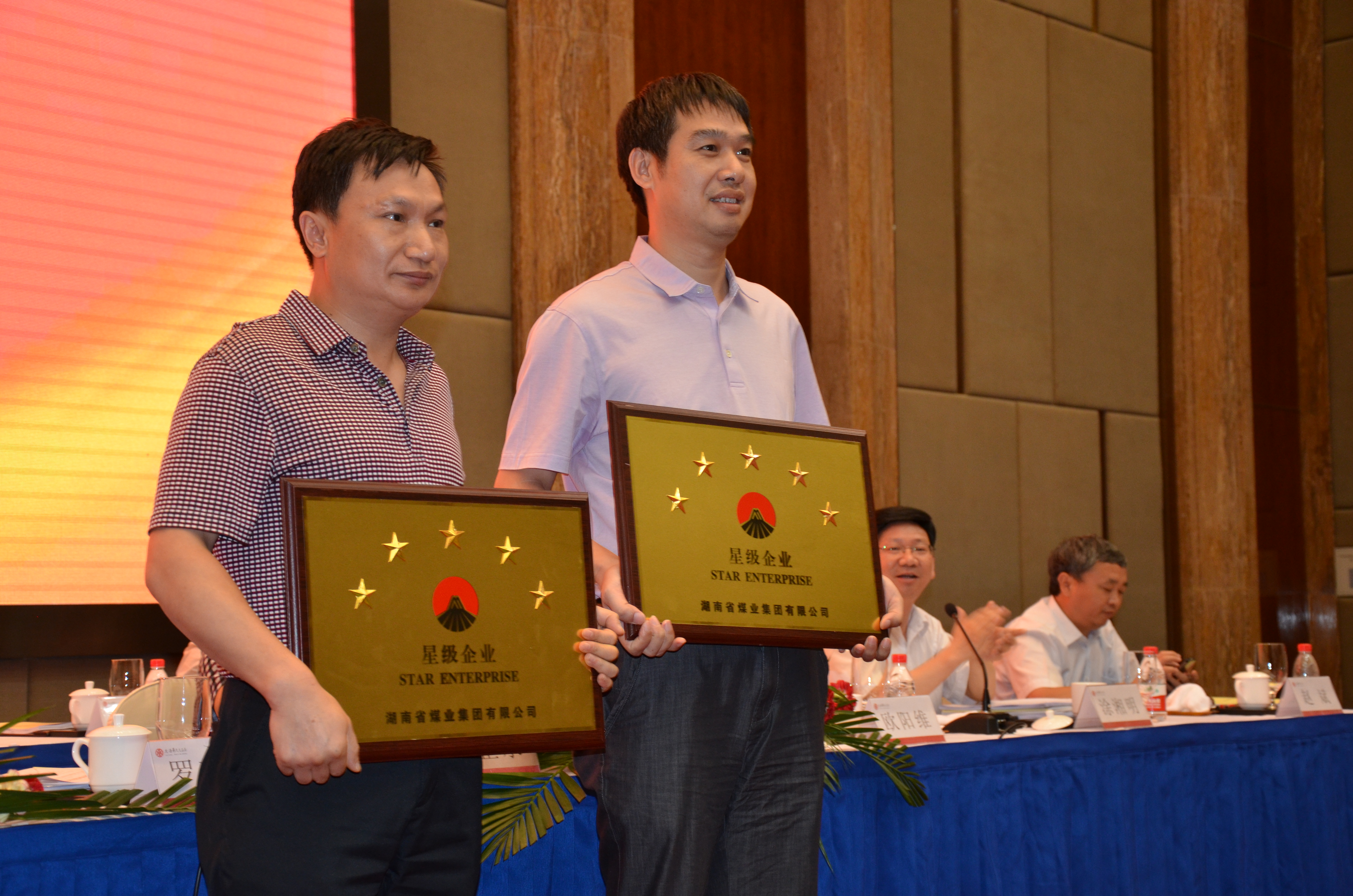 南阳矿业公司总经理石武军(右一)喜获“五星级企业”奖牌