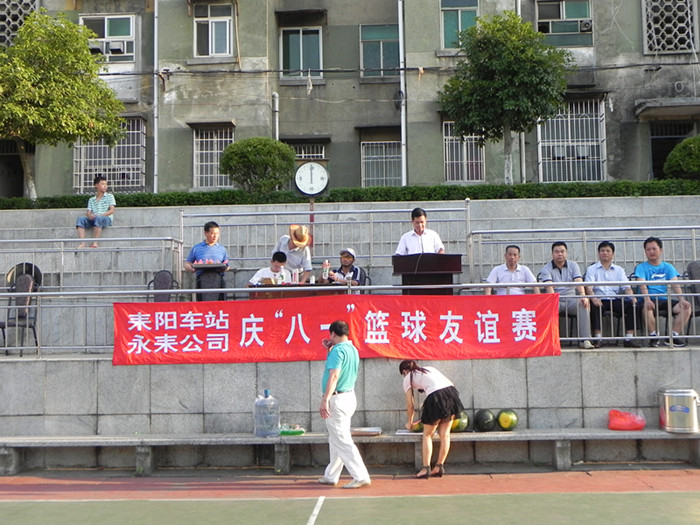 为增进与业主单位之间的友谊,8月31日下午,广铁耒阳车站徐站长,彭书记一行,兴致勃勃地带领篮球队员来到公司,与公司篮球队进行了一场庆“八一”篮球友谊赛。