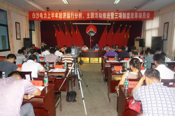 公司执行董事、总经理刘绍勇同志作了题为《深入挖潜增效 推进改革创新为全面完成全年工作目标而努力奋斗》的工作报告;副总会计师欧永疆作了《白沙电力公司2012年上半年经济运行分析报告》;副总经理宾跃忠通报了《白沙电力公司上半年“练内功、挖内潜,向管理和市场要效益,减负灭亏”主题活动分项考评结果》;对荣获上半年主题活动单项考评前二名的优胜单位进行了颁奖授牌;副总经理、总工程师赵甫华解读了《白沙电力公司月度重点工作考核细则(试行)》;各单位主要负责人就搞好今年后五个月的工作进行了表态发言,并分别提出了下一步工作思路;公司党委副书记、纪委书记、工会主席刘保平作了《坚定信心迎挑战凝心聚力促发展 全力以赴打好下半年减负灭亏攻坚战》的总结讲话。