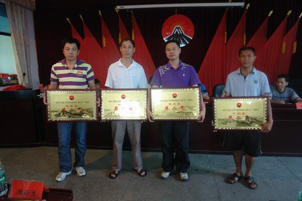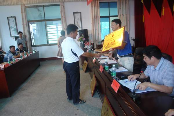 图八:公司总经理刘绍勇对荣获上半年主题活动单项考评前二名的优胜单位进行颁奖授牌