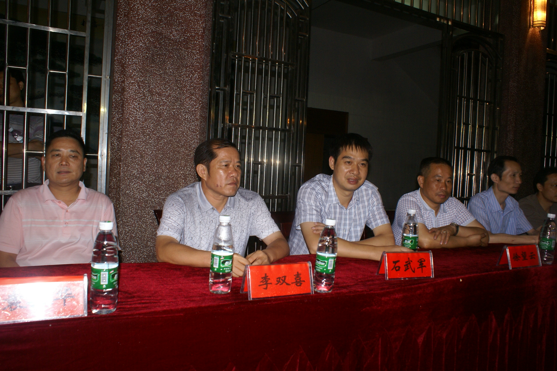 该公司生产副总袁振华(左一)、经营副总李永富(左五)在主席台就座并观看球赛