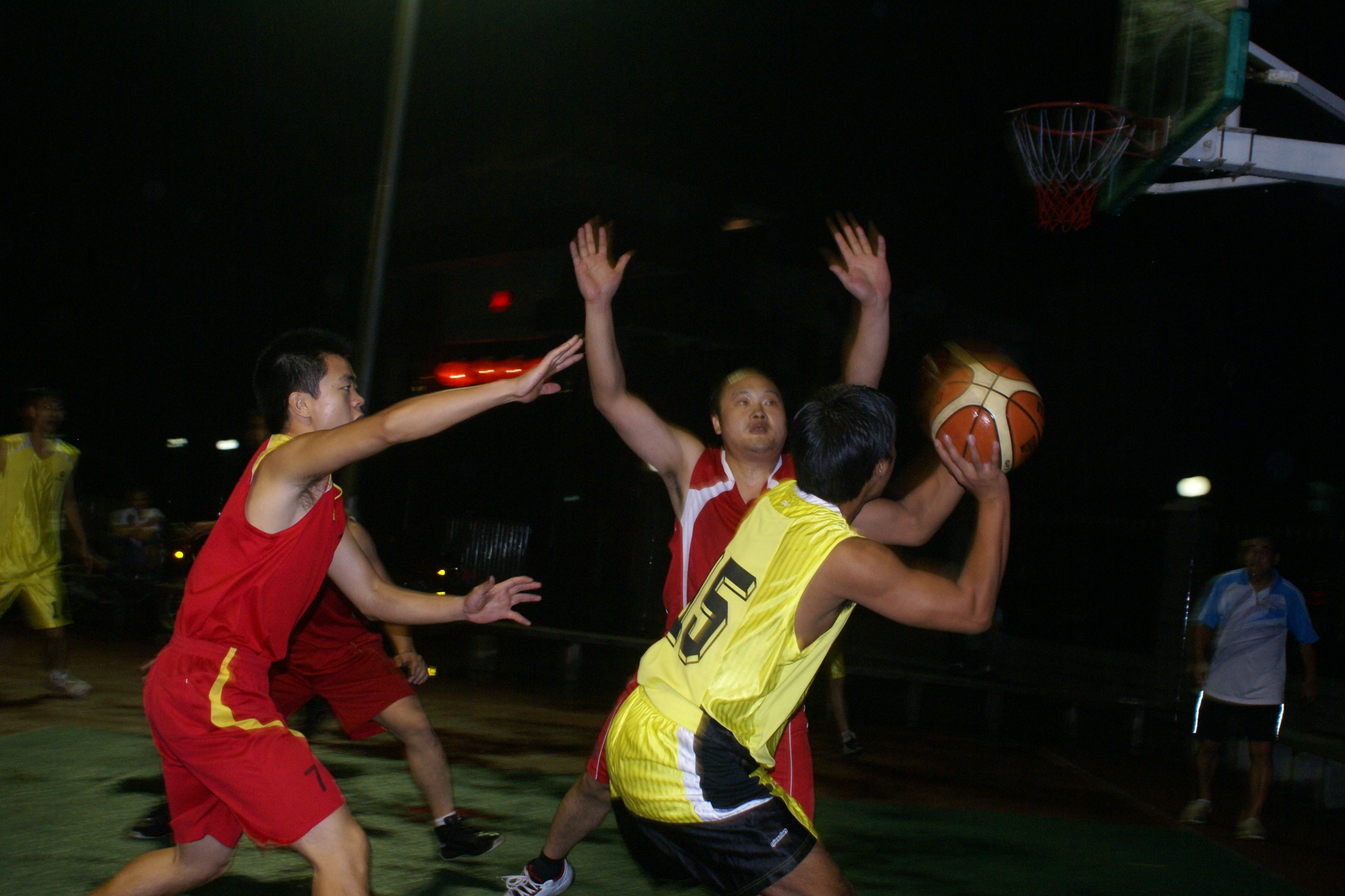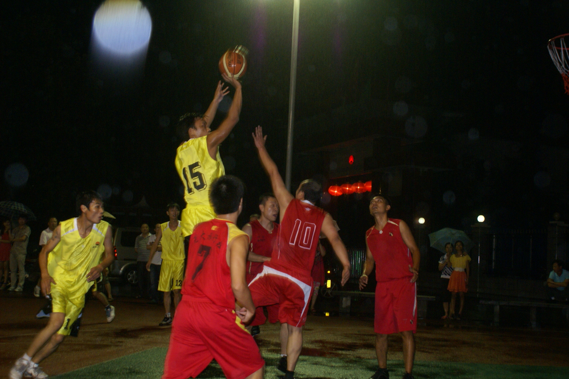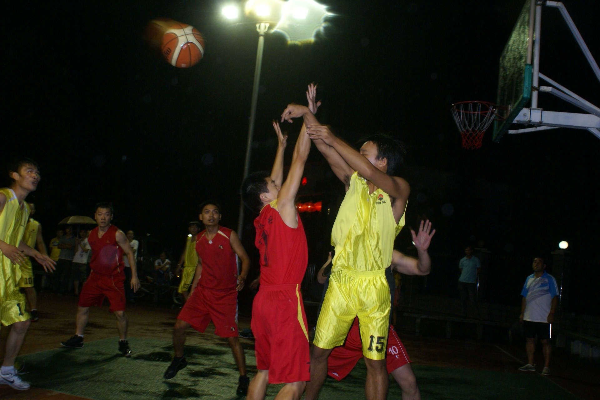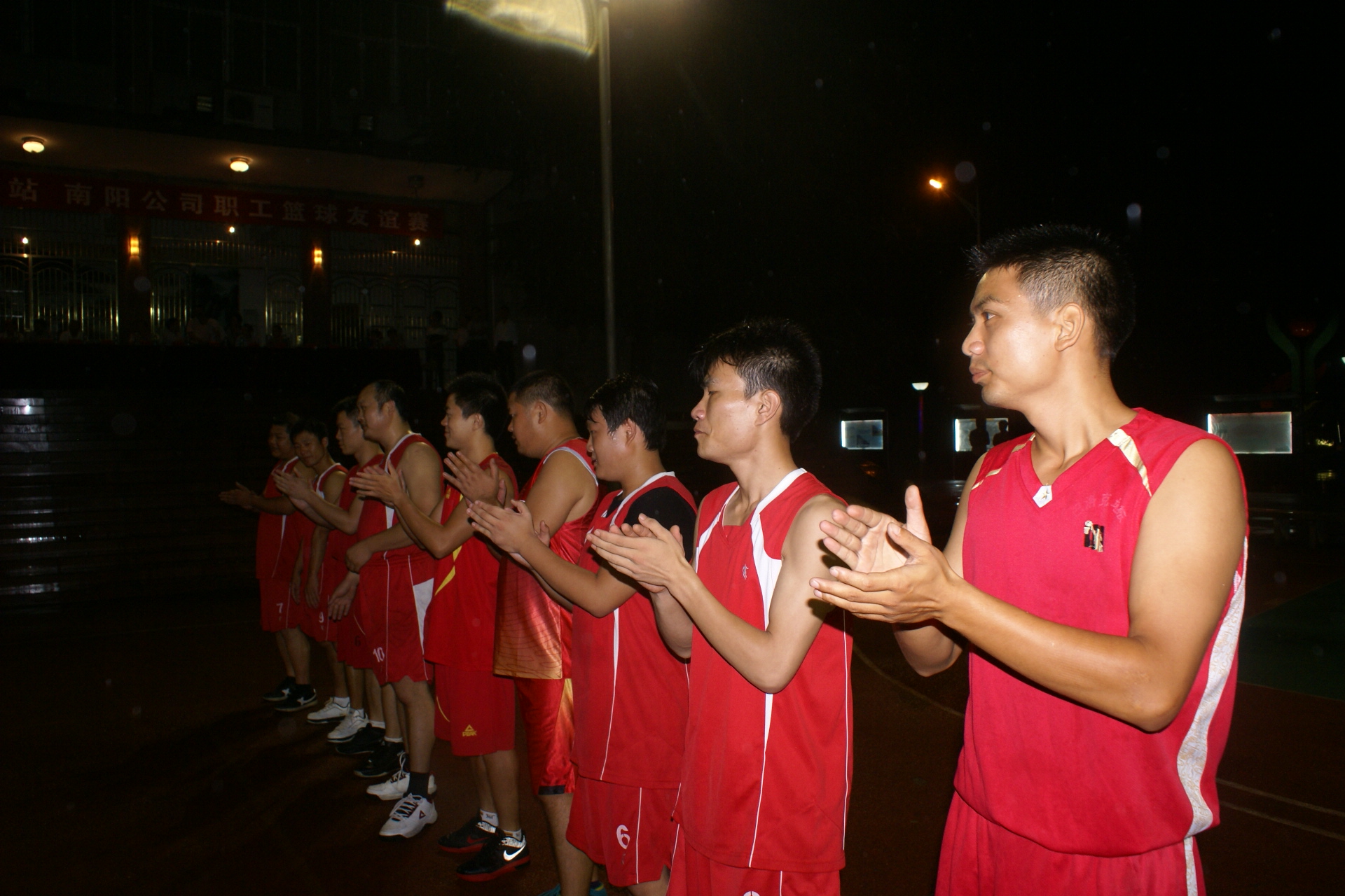 当晚7点38分,随着裁判员清脆哨声响起,篮球赛拉开序幕。比赛现场气氛活跃,两个球队的精湛球技和拼搏精神展示得淋漓尽致,经过激烈角逐,南阳矿业公司以48比36取胜。南阳矿业公司总经理石武军、生产副总袁振华、工会主席、纪委书记王建军、经营副总李永富及广铁集团耒阳站的有关领导在主席台就座并观看了球赛。