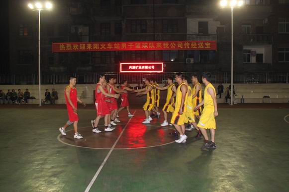 兴源公司自成立以来,在煤炭运输、销售方面得到了耒阳火车站的大力支持。因此,兴源公司特地邀请耒阳火车站男子篮球队前来进行技术交流切磋,同时,值此机会,向耒阳火车站多年来对公司的关心和支持表示诚挚的感谢。通过此次的友谊赛,更进一步地增加了双方的友谊和团结合作精神。经过激烈的角逐、顽强地拼搏,最后,兴源公司篮球队以47:48一分之差负于耒阳火车站篮球队,圆满地结束友谊赛。