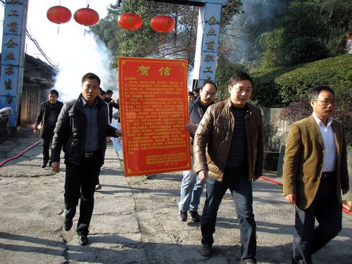 九点多钟,在鞭炮声和锣鼓声中,公司董事长、总经理何文飞、副总经理周晓明、副总经理梁瑞虎以及公司部分部门负责人手捧着100万元安全奖金的模拟支票和大红喜报,徐徐走向白山坪煤矿办公大楼,矿长徐永桂、总支书记杨伟忠心情激动的接过奖金支票和喜报。