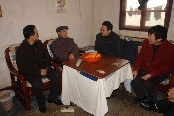 图二:实业公司副总经理蒋厚今率队来到电力公司退休职工邹顺生老人家嘘寒问暖