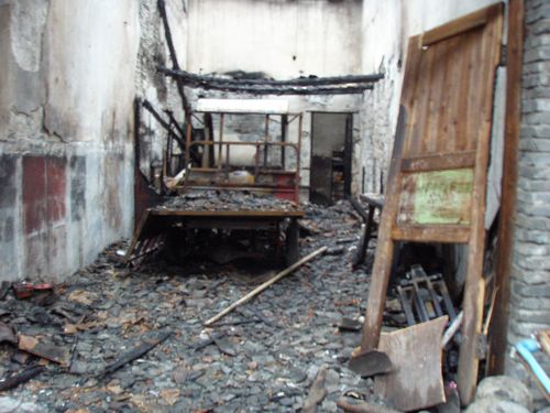 这是一条合面街,两边都是店面,且店面前均搭有雨棚,特别是发生火灾的煤气店辅,左右100多米仍是土木结构,整条街经营户全都是农民。据灾害店主邻居介绍,晚10点40分左右,突然一声巨响,煤气店一扇紧扣的大门竟冲到街对面的店铺门上才落下,吓得左邻右舍纷纷走出户外,看到煤气店熊熊大火,都以为是店里的煤气罐爆炸了,如再发生爆炸,后果不堪设想,即使不发生爆炸,火势蔓延,土木结构的店面可能瞬间毁于大火,急得大家赶紧拨打110、119以及白山坪公司领导求助,在大家忙着救助的同时,邻居伍荣英见店主的儿女们仍在店内,只身冲了进去,将其三个女儿全部抱出。接到电话的白山坪公司领导,立即通知救护中队前往救助,救护队员到达现场后,在队长姜文的指挥下,冒着煤气罐随时爆炸的危险,兵分两路,一路从店铺正面用水枪灭火,一路从房顶扒开瓦片从上往下喷水,仅10多分钟火势得到控制,此时驻白山坪派出所、耒阳市泗门洲镇派出所干警也已到达,万幸的是,这期间煤气罐在火势中没有爆炸,经过救护队员近一个小时的奋力扑救,火情完全扑灭,事后,听救护队长姜文介绍:之前的那次爆炸,并不是煤气罐爆炸,而是店主家的摩托车油箱爆炸,如果是煤气罐爆炸,破坏性更大。没有火灾威胁的整条街店主们,对救护队员的勇敢救助行为感激不尽,他们自己也觉得,没有白山坪救护中队,整条商业街会是一个什么样的景象,不敢想象。
