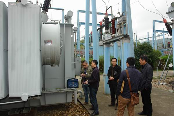 图一:衡阳电业局相关人员来盐沙变电站对3#主变进行验收
