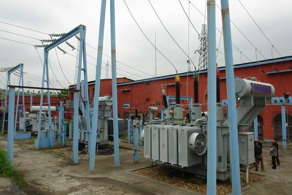 图三:盐沙变电站三台主变,右一为增设扩容的3#主变