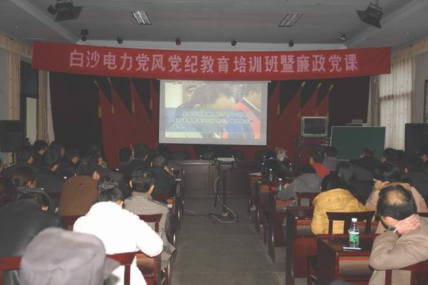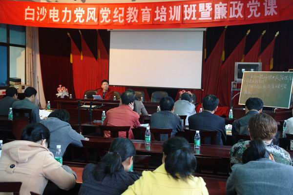 为了认真贯彻落实中纪委十八届二次全会精神和湘煤集团、白沙实业公司党风建设、反腐倡廉工作会议精神,正确引导和教育我们的党员干部、纪检监察员、四管人员牢固树立廉政自律意识,做到防微杜渐,警钟长鸣,从源头上预防和治理腐败,公司于2013年4月25日下午二时三十分在公司工会文化楼二楼会议室举办中级职员、纪检监察员和“四管”人员党风党纪教育培训班暨廉政党课。培训班由公司党委副书记、纪委书记刘保平主持,并上了一堂生动的廉政党课,“用十八大精神推进反腐倡廉工作迈上新台阶”,他从三大方面讲述:一是十八大反腐倡廉工作的新观点、新突破;二是中国当前反腐倡廉主要形势特点;三是腐败的主要原因。参加培训的78名人员,认真听、认真记,并观看《权力的迷途》“县处级干部违纪违法案”警示教育片。