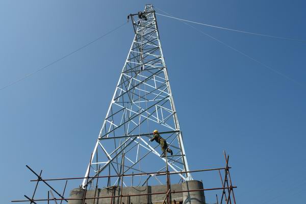 图一:烈日下供电所外线工在炙烤的铁塔上作业