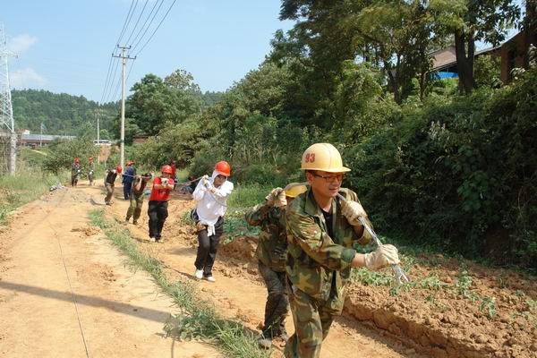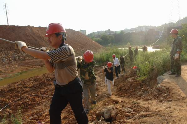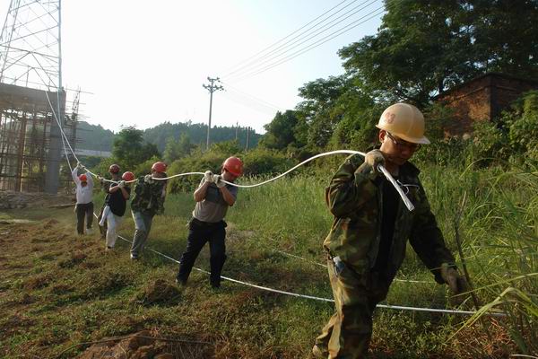 紧急就是号角!施工期间正值7月份高温酷暑,天气闷热难当。同时,在搬迁过程中,农民阻工、施工图纸变更、周边协调等诸多影响工程进度因素,加大了施工难度和工作量。面对种种困难,由建安公司承建的铁塔基础和供电所承揽的线路架设搬迁两支施工队伍,战高温、斗酷暑,加班加点奋战在施工现场,每天早晨6点开工,晚上8点天黑了才收工,尤其建安公司,通宵达旦地施工。为了做好服务基层、改变工作作风,该公司机关组织20余名人员参加35KV珠水线义务拉线、拖线、放线。
