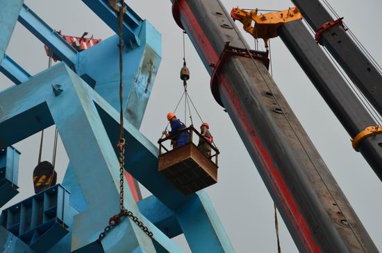 湖南省最高钢井架在白山坪公司磨田矿成功吊装(配图)