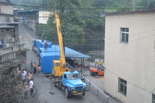 下午,一辆长臂吊车将几个几吨重的巨大箱柜从卡车上缓缓吊放地面,再由插车将大型箱柜抬推到指定位置,工程技术人员正按图纸说明进行安装,另一施工场地,锅炉脱硫项目机械仪器也在吊拉安装,除两项安装工程之外,固定物体堆放,挡矸墙建设项目延伸工程也在紧锣密鼓的施工之中,该矿环境治理工作全面铺开。