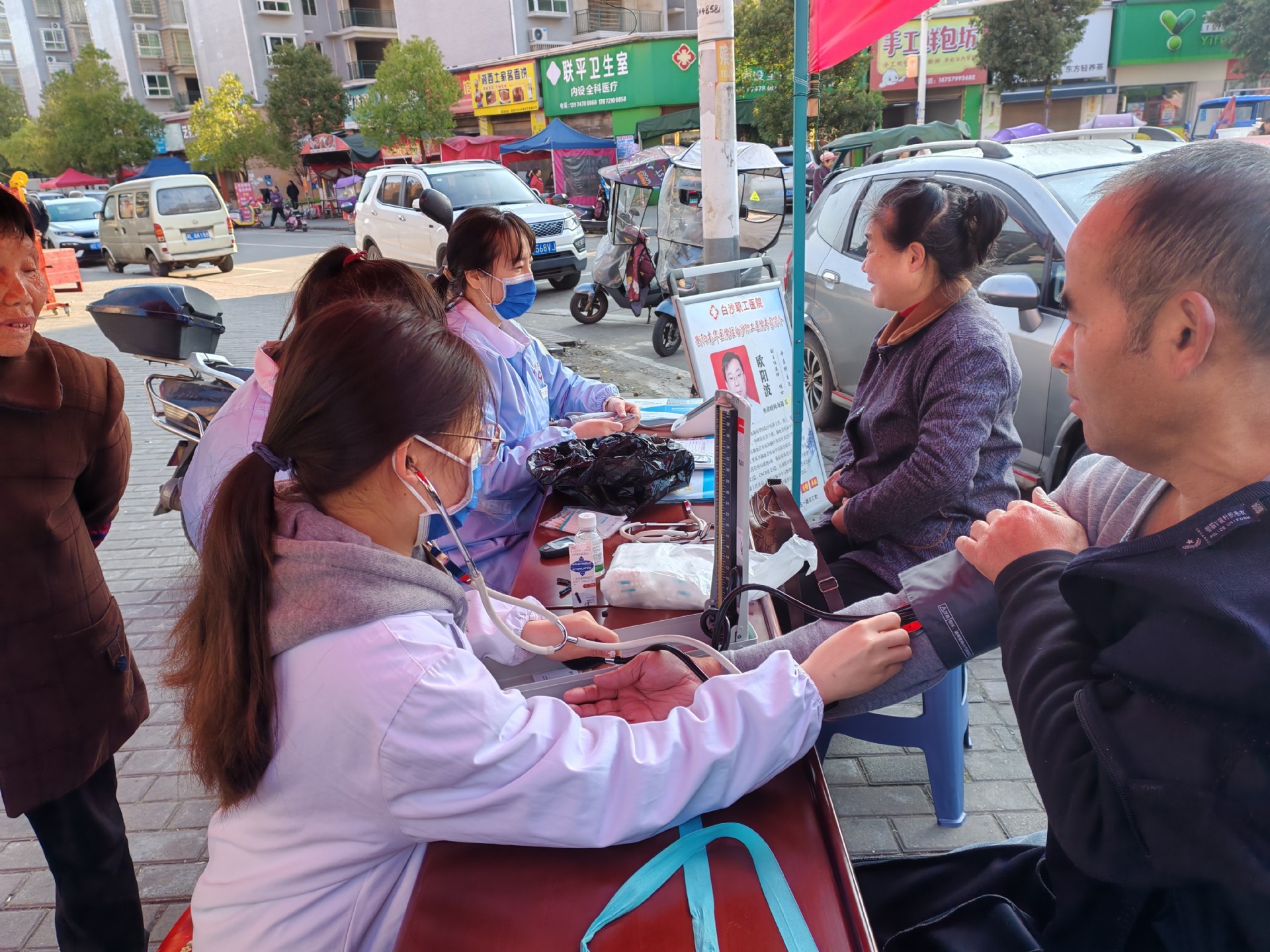 义诊现场,医护人员为居民提供包括测量血压、血糖、心肺功能听诊以及慢性病用药指导等服务,针对高血压、糖尿病等慢性病患者,逐一讲解用药规范及日常注意事项,同时耐心询问居民的身体状况、既往病史和生活习惯,面对面解答各类健康疑问,用专业的诊疗建议和贴心的叮嘱,为居民的健康保驾护航。