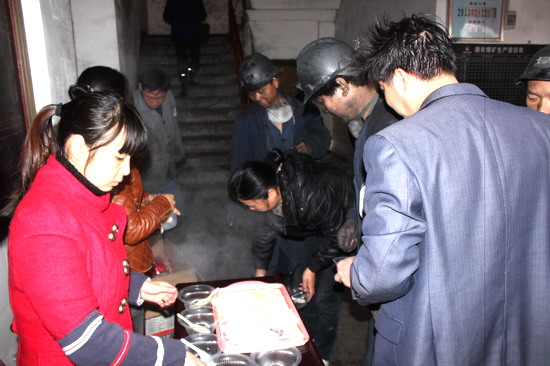正月十五早晨6点多钟,天刚蒙蒙亮,在磨田煤矿班中餐食堂里面,几个女工家属正紧张忙碌着,笔者走近一看,原来她们在为采掘一线员工煮着汤圆,经过一个多小时的忙碌,一大锅热气腾腾,色香味俱全的汤圆加工而成。7点40分,大家把汤圆抬到进班室门口,给员工发汤圆,看着大家高兴的吃着汤圆,女工家属们心里甜滋滋,都开心笑了。